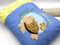 Bestickt wird das Kissen mit der süßen Schildkröte und dem Namen des Kindes.