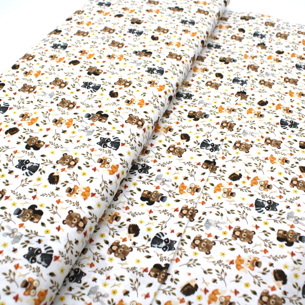 Baumwollstoff weiß Tiere Waschbär Fuchs Bär Westfalenstoffe