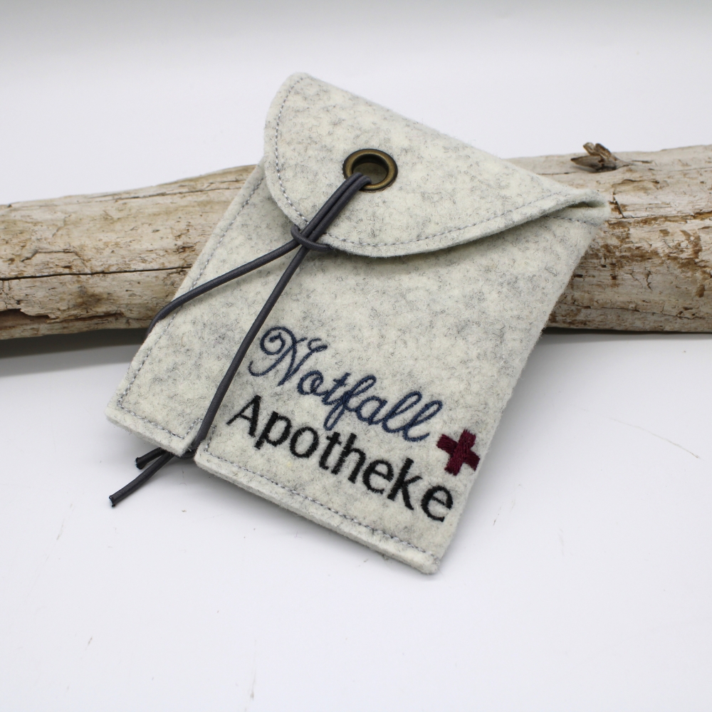 Etui aus Filz, bestickt mit Notfall Apotheke.