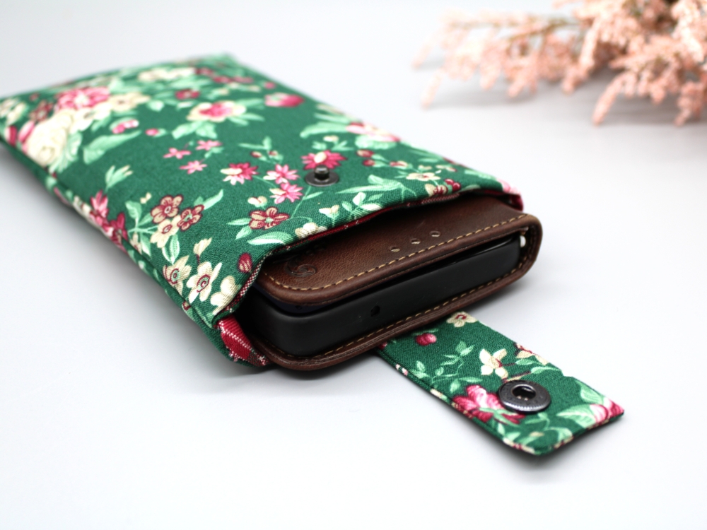 Meine Handyhülle vereint stilvolle Blumenmuster mit sanfter, schützender Struktur. Die äußere Schicht besteht aus hochwertigem, blumigem Baumwollstoff, der jedes Smartphone zu einem eleganten Blickfang macht. Innen ist sie zusätzlich mit mit einer weichen Vlieseinlage gefüttert, die dem Gerät zuverlässigen Schutz vor Stößen bietet.