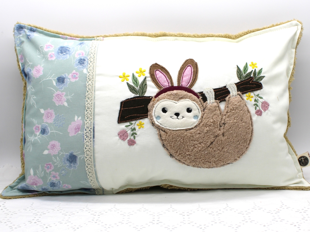 Kissen mit einem Faultier, dass sich als Osterhase verkleidet hat.