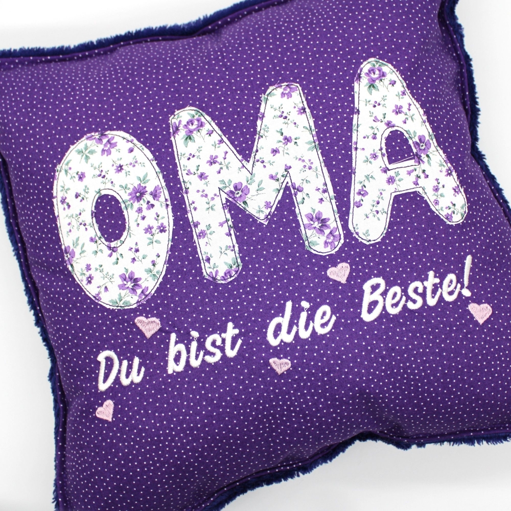 Kissen Oma lila Blumen Blümchen 40x40cm Du bist die Beste