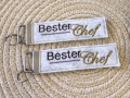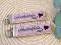 Aus Filz hergestellte Schlüsselanhänger bestickt mit Namen oder Wunschtext.