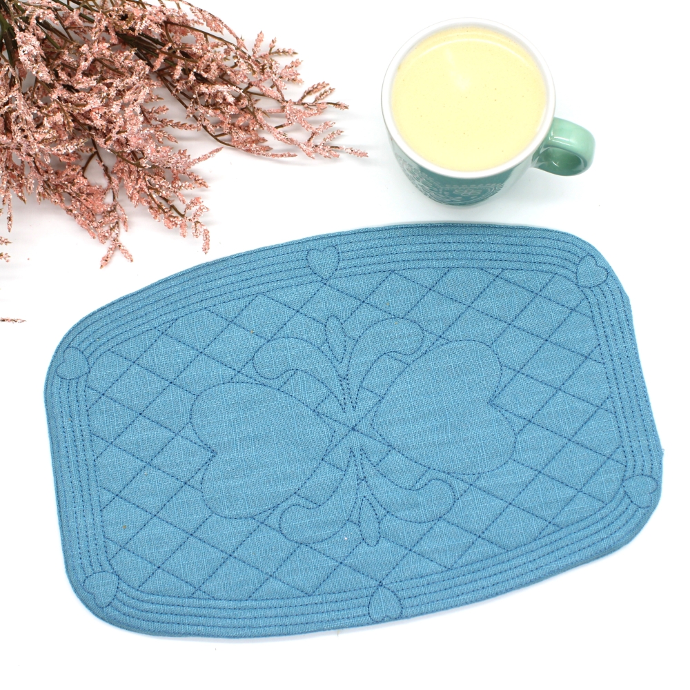 Platzset Quilt Untersetzer Tulpe petrol Herzen 19 x 29cm
