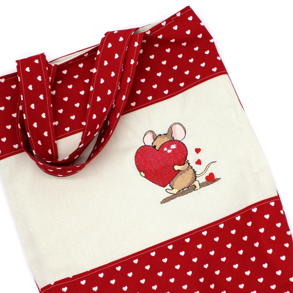 Tasche bestickt mit einer süßen Maus mit Herz.