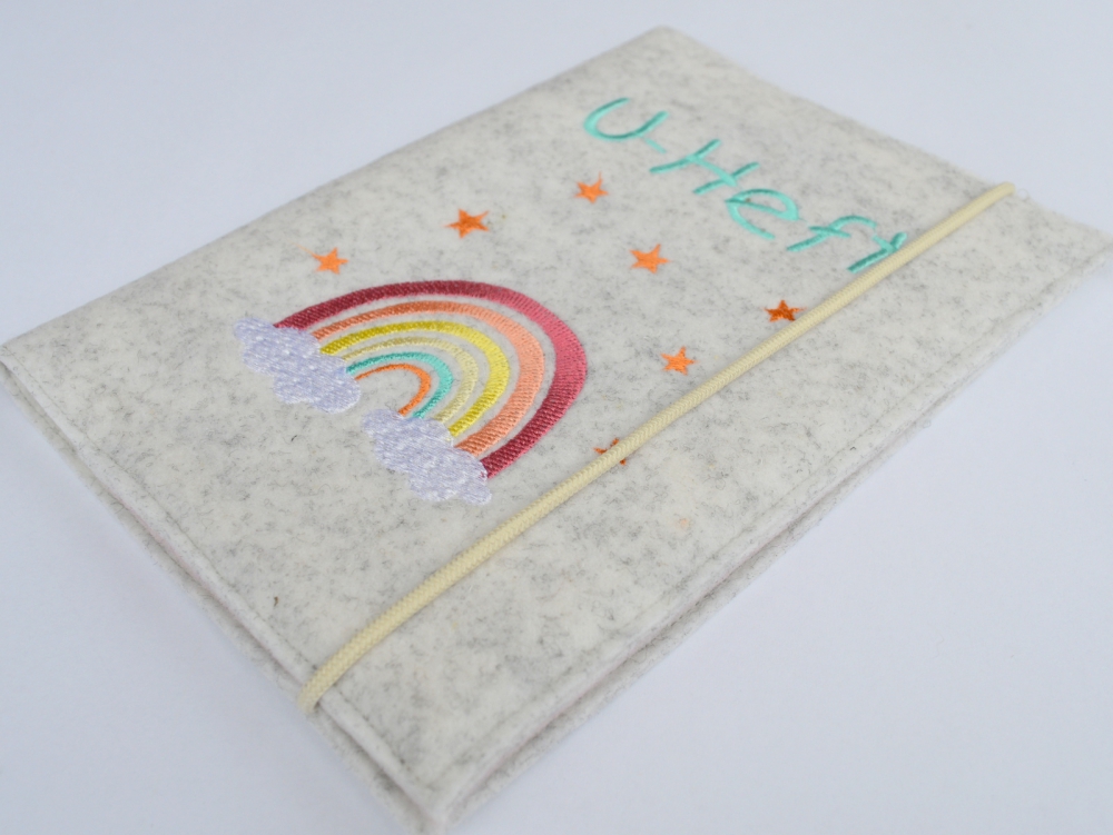 U-Hefthülle aus Filz mit Regenbogen gestickt