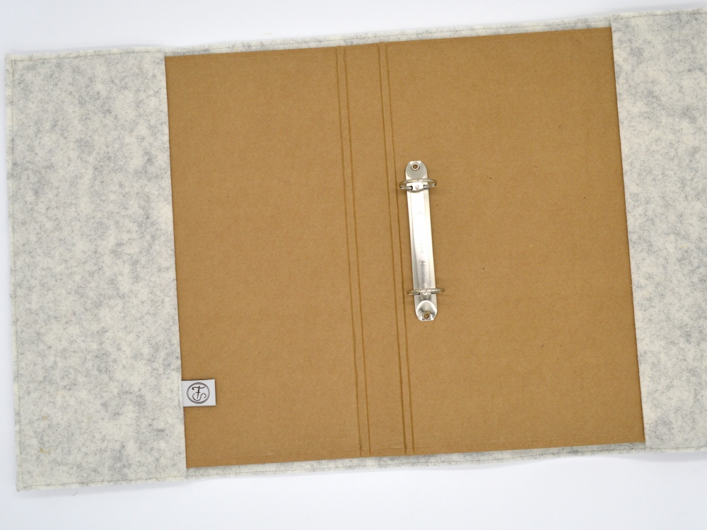 Die Filzhülle aus hochwertigem, hellgrauen Filz ist für ein schmales Ringbuch geeignet. Das Ringbuch ist im Lieferumfang bereits enthalten. Verschlossen wird es mit einem passenden Gummiband, auf das Perlen aufgefädelt werden.